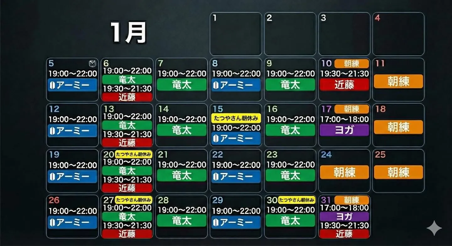 2026年1月からの予定表になります。