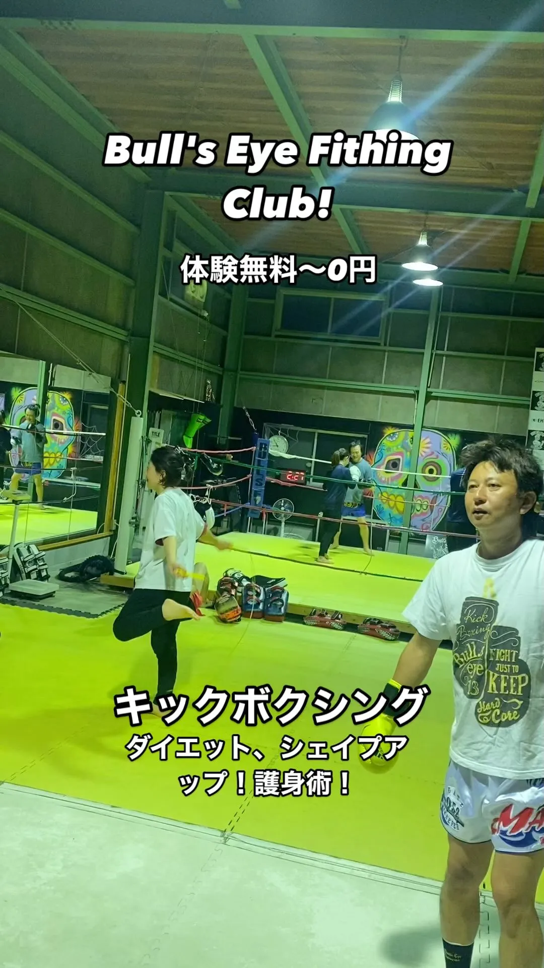 岩倉市でキックボクシングブルズアイファイティングクラブ初心者アラフォー女性〜中心に頑張っております♪ダイエット、シェイプアップ、ストレス発散、護身術にはキックボクシング〜体験無料〜0円Bull'sE…